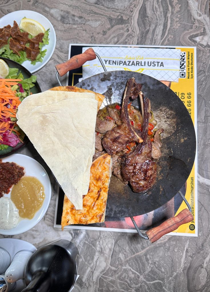 Kuzu Tava İçindekiler:Kuzu ön koldan hazırladığımız kavurma etini marine edip dinlendiriyoruz. 2 kalem pirzola ızgarada mühürlenip kavurma ile birlikte sacda servis edilir. Fiyat:1100.00 TL